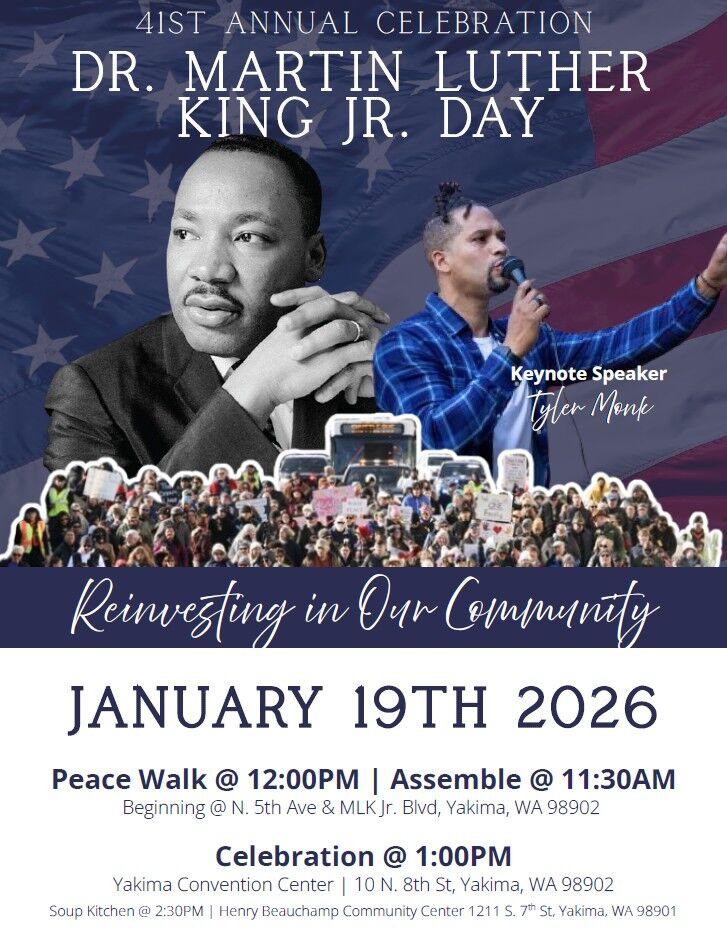 Everyone is invited to participate in the 2026 Peace Walk and Celebration for Dr. Martin Luther King, Jr. Day on Monday, January 19, 2026 in Yakima.The Peace Walk will assemble at 11:30 am at the c...